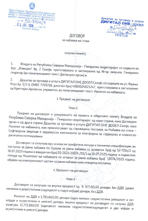 Последниот договор е рамковна спогодба за софтверски лиценци за виртуелна платформа во вредност од 8 милиони евра.