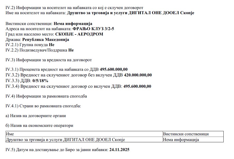 И сите овие тендери се со владини и државни институции во период од мај 2025 до денес ноември 2025.