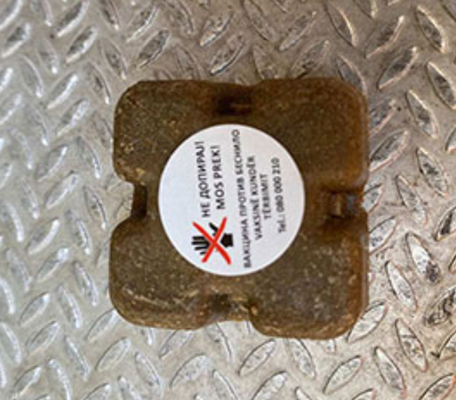 „Апелираме до граѓаните во наредниве денови исклучително внимателно да се движат во природа, да внимаваат во комуникацијата со животните, особено со лисиците кои се приближуваат до населените места и кои не покажуваат страв од луѓето и во никој случај да не ги допираат вакциналните мамки, кои се со кафена боја и личат на чоколадни коцки. Направени се од смеса со рибино брашно и имаат мирис на риба кој ги привлекува лисиците. Во мамките има пластична капсула со течна вакцина која содржи атенуиран вирус на беснило и биолошки маркер – тетрациклин за утврдување на успешноста на вакцинацијата. Истите се соодветно обележани, со инструкции за начинот на постапување при допир“, велат од АХВ.