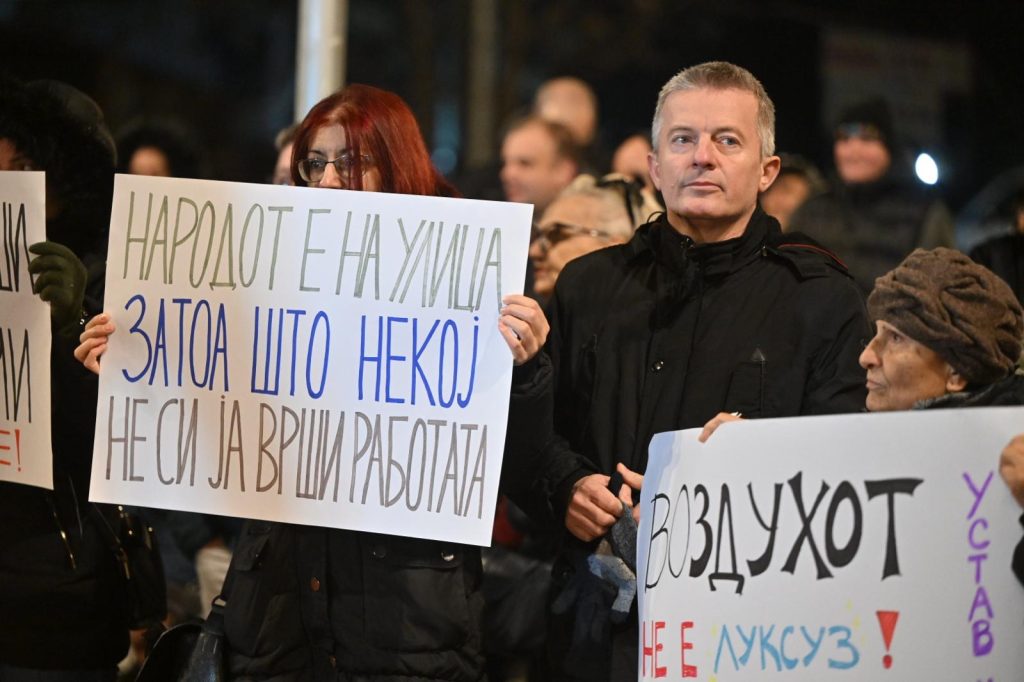 Сообраќајот беше целосно во прекин на раскрсницата меѓу булеварите „Србија“ и „Борис Трајковски“ (поранешна „Првомајска“), каде демонстрантите се собраа со транспаренти и пароли против смогот што со денови го гуши градот. Граѓаните порачаа дека трпението е при крај, додека институциите, како што велат, не преземаат доволно конкретни чекори за заштита на јавното здравје.