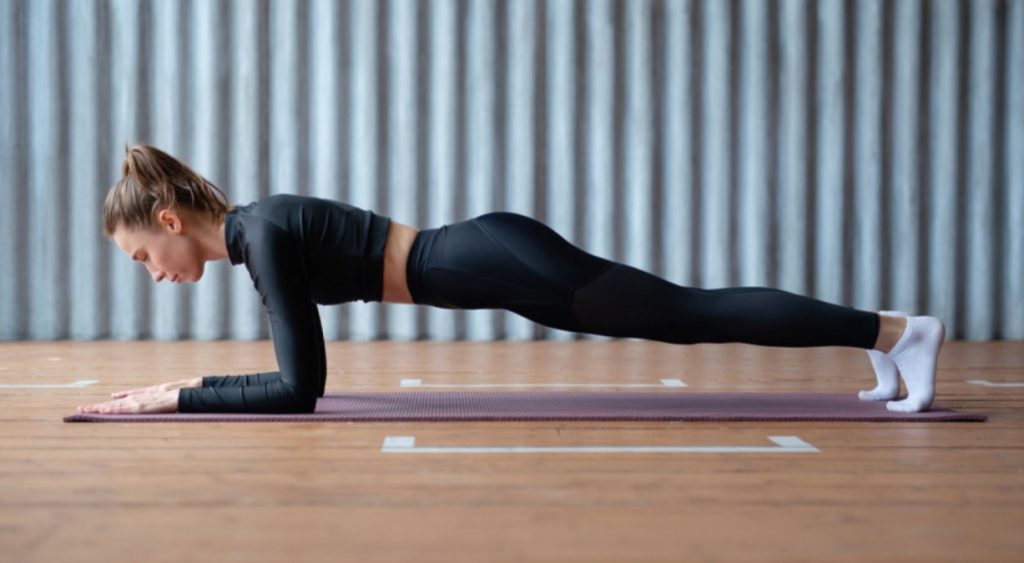 Правилниот планк изгледа вака: потпрете се на подлактиците, лактите треба да бидат директно под рамената, нозете испружени и цврсто потпрени на прстите. Вашето тело треба да формира права линија од главата до петиците, без да ги спуштате колковите или да ги кревате задникот.