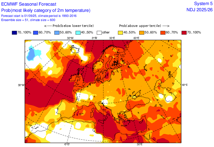Ни започнува есента, според она што можам да го кажам за пртстојната есен 2025, според Европскиот модел за Среднорочна прогноза (ECMWF) не очекува динамична атмосфера над нашиот дел од Европскиот Континент. Тоа значи дека ни следува многу променлива есен, ќе има и почести врнежи од дожд и пониски температури на воздухот за разлика од изминатите години, сепак и порај ова не значи дека нема да имаме топли есенски денови со многу сонце.