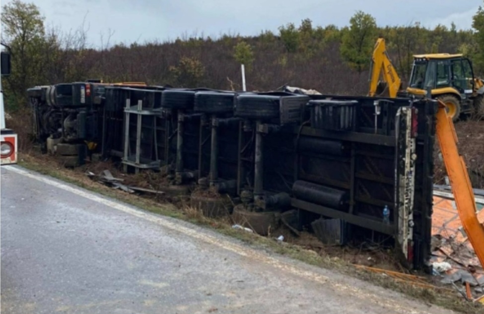 Камион излета од патот Валандово-Дојран: Едно лице загина, седум се повредени