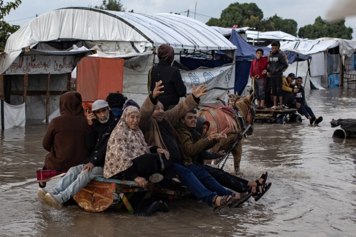 Во последните недели Газа се соочува со обилни врнежи, силни ветрови и ниски температури, при што повеќе од 53.000 шатори, кои служат како привремено сместување за раселените лица, се оштетени или уништени.