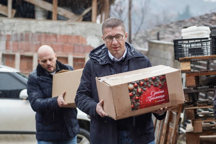 Премиерот Христијан Мицкоски соопшти дека заедно со неколку градоначалници во пресрет на Бадник поделиле пакети помош во неколку скопски општини.