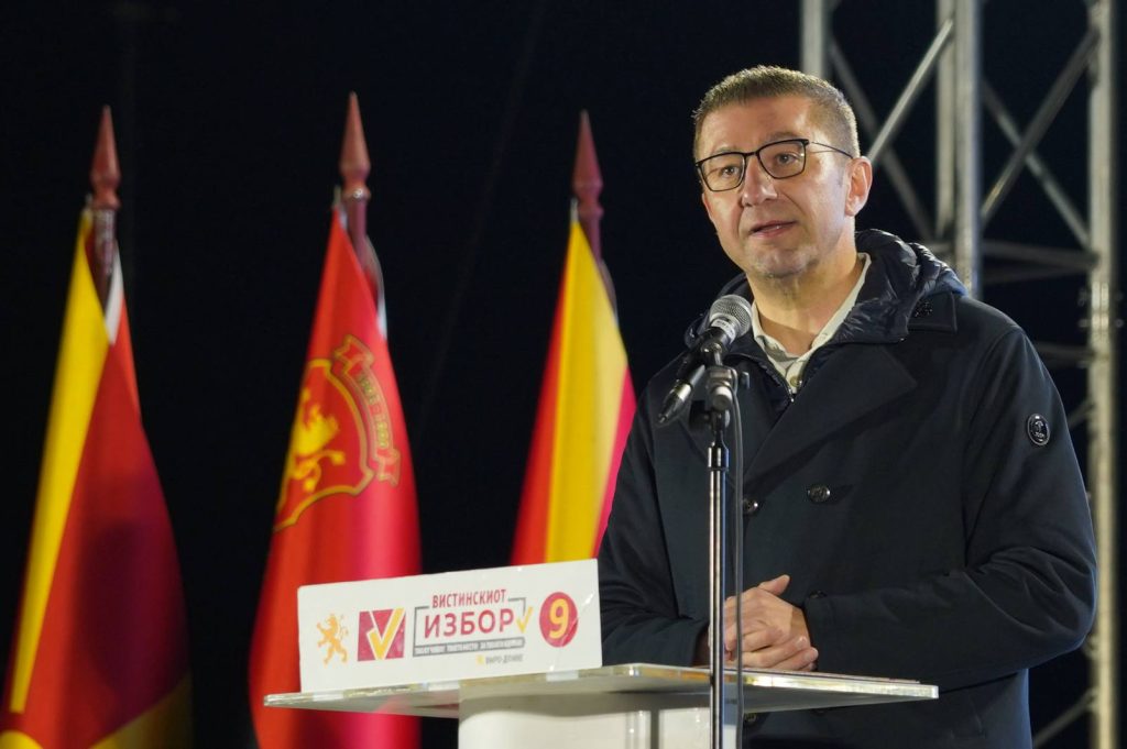 „Сакам да обрнам внимание на еден парадокс кој се случува, гледајќи ја кампањата на нашите конкуренти. Го слушам Венко како на државава ѝ се случувало цунами, од лошо – полошо. Бил загрозен домот, семејството, луѓе почнале да се иселуваат, имало нечесни игри, ама судиите биле професионалци. Инфлацијата галопирала и не знам што уште не. Каде беа тие пред година и половина, тие заедно со ДУИ беа власт седум години. Ние не почнавме од прозорците, фасадата, кровот на нашиот дом. Почнавме од темелите. Сменија име, устав, донесоа двоцифрена инфлација, профитираа од тендери, дури и од вакцини правеа профит. Ветуваа дека ќе ги донесат Фејсбук и Гугл, а единствената инвестиција беше таа во фабриките за марихуана“, рече Мицкоски.