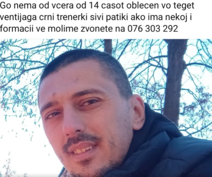 Семејството упатува апел до сите граѓани кои имаат било каква информација што може да помогне во неговото пронаоѓање веднаш да се јават на контакт бројот: 076 303 292.