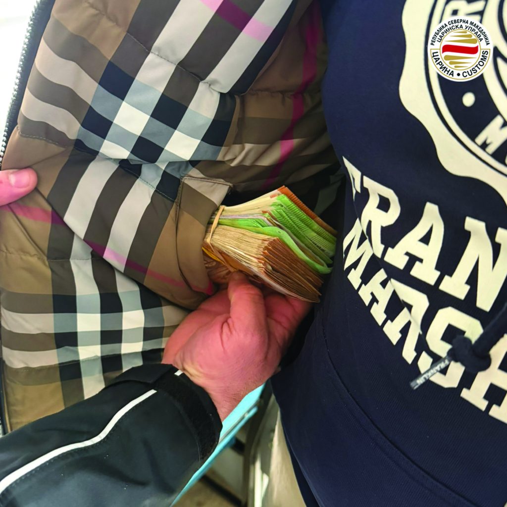 – На излез од држвава на граничниот премин Богородица кај четворица патници се пронајдени вкупно 20.000 евра. Односно, секој од нив со себе носел по 5.000 евра, сума која е потребно да се пријави и за која е потребна потврда од овластена банка или менувачница при изнес од државава. Според Законот за девизно работење на секој од патниците им се вратени по 2.000 евра, а остатокот од по 3.000 евра или вкупно 12.000 евра се привремено задржани.