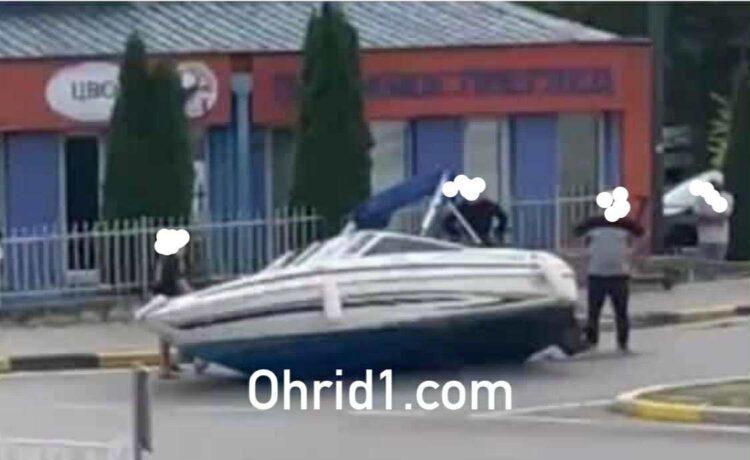 Пловило ( глисер ) при транспорт испаднало од приколката и стои на асфалтот. Во незгодата нема повредени лица.