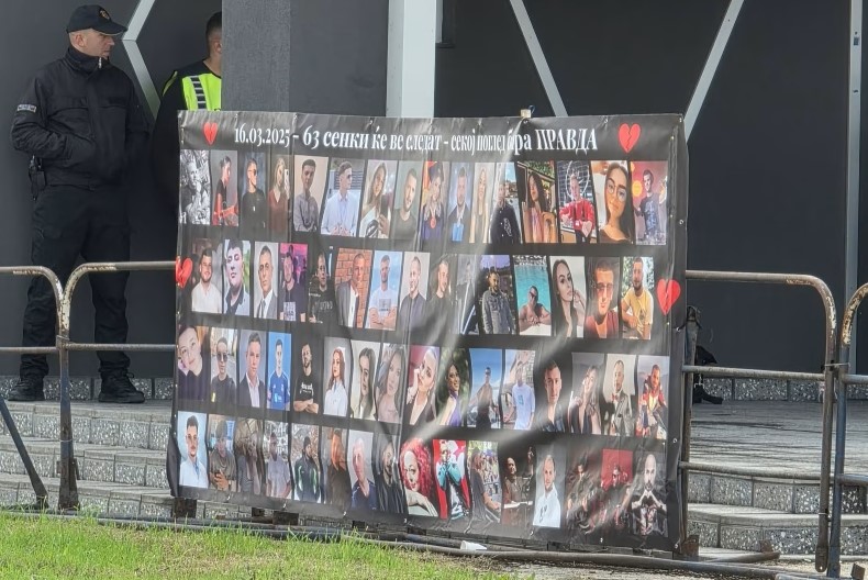 Денеска продолжува судењето за трагедијата во дискотеката „Пулс“, процес кој внимателно го следат јавноста и семејствата на загинатите. На влезот од судницата, обвинетите повторно беа дочекани со транспарент на кој се прикажани ликовите на жртвите – силен потсетник на трагичниот исход што предизвика длабоки последици. „63 сенки ќе ве следат, секој поглед бара ПРАВДА“, стои напишано на транспарентот.