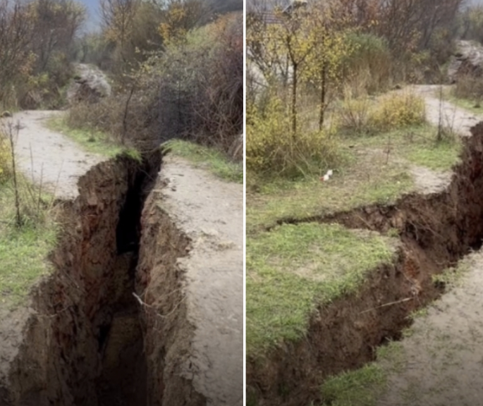 Се работи за длабока и широка пукнатина која претставува сериозна опасност за околните објекти и инфраструктура.