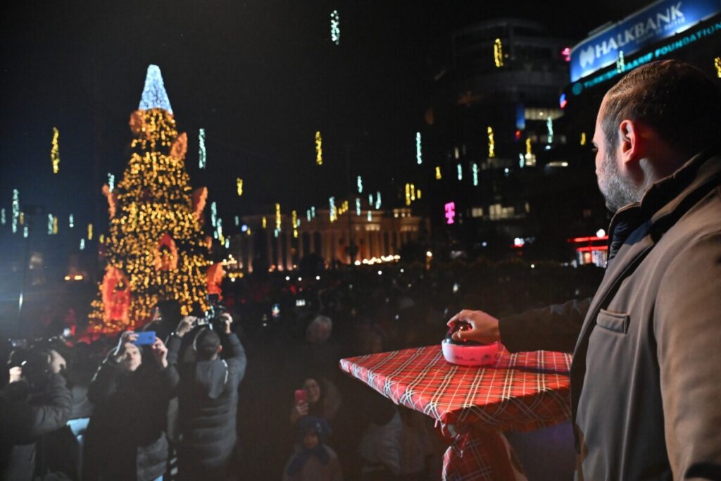 Градоначалникот Орце Ѓорѓиевски со свечено осветлување на новогодишната елка и официјалното отворање на Божиќниот маркет вечерва го означи почетокот на празничната магија во Скопје.