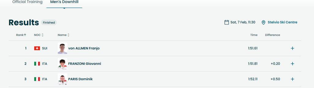 Зад него на подиумот се најдоа двајца Италијанци, Џовани Францони и ветеранот Диминик Парис кои освоија сребрен, односно бронзен медал.