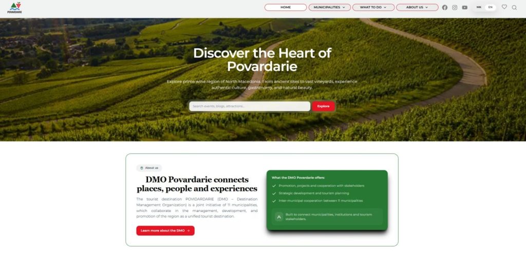 Со цел зајакнување на локалниот економски развој и промоција на регионалните потенцијали, Организацијата за менаџмент на дестинации (ДМО) ја промовираше новата веб-платформа: www.povardarie.mk. Повардарие со ова прави важен чекор кон позиционирање како препознатлива регионална дестинација на европската и светската мапа.