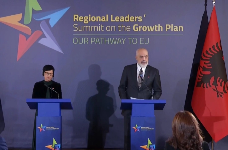 – Мило ми е што гледам дека овој самит започнува со јасност што ја почувствував по пристигнувањето на сите, а за време на вечерата вчера, Западен Балкан одлучи да продолжи со планот за раст како наш патоказ. Патоказ не кон Брисел, туку кон слободите на европскиот заеднички пазар. Подобро доцна отколку никогаш, би можело да се каже, особено по сите шанси кога возовите за регионална соработка си заминаа, а ние останавме на перонот борејќи се со старите навики наместо да купиме билет за иднината. Луѓето не чувствуваат интеграција, тие чувствуваат пониски трошоци, полесно патување, подобри работни места, слобода на движење, нагласи Рама.