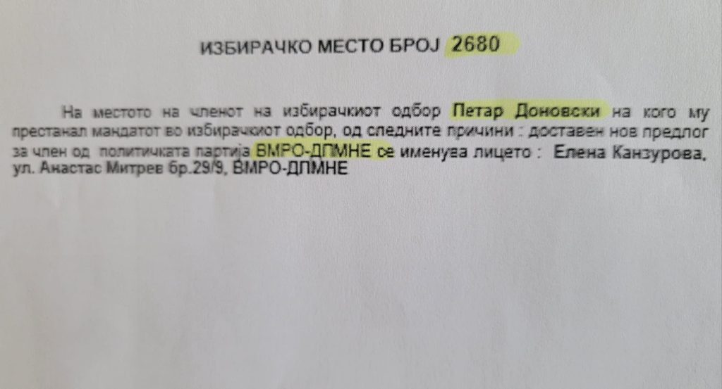 Петар Доновски бил член на Избирачки одбор од ВМРО-ДПМНЕ, на Избирачко место 2680 во Општина Аеродром.