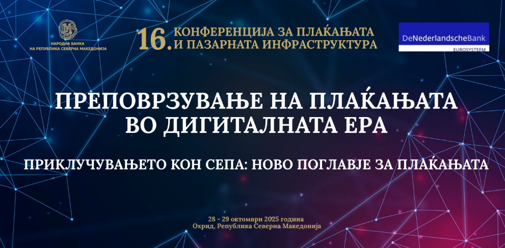 Народната банка и Централната банка на Холандија, по шеснаесетти пат, ја организираат Конференцијата за плаќањата и пазарната инфраструктура, продолжувајќи ја долгогодишната традиција на заедничко разгледување на можностите и предизвиците во областа на платежните услуги.