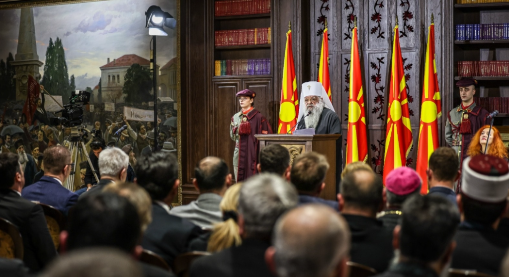 На свечената академија се обратија и поглаварот на Македонската правоиславна црква – Охридска архиепископја г.г. Стефан и истакнатиот македонски писател Венко Андоновски.