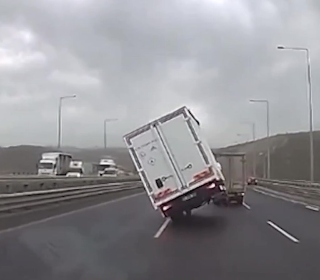 Силен и бурен ветер денеска создаде сериозни проблеми во сообраќајот на автопатот Северна Мармара во Истанбул, каде што, според информации од турските медиуми, беа превртени неколку камиони.