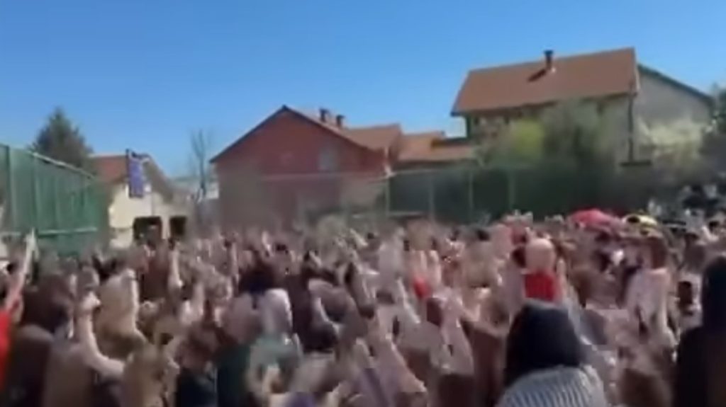 На снимката се гледа како голем број ученици заедно пеат, при што особено гласно се извикува името на градоначалникот. Видеото беше споделено од поранешниот технички премиер и министер за внатрешни работи Оливер Спасовски, кој јавно реагираше на случувањето.