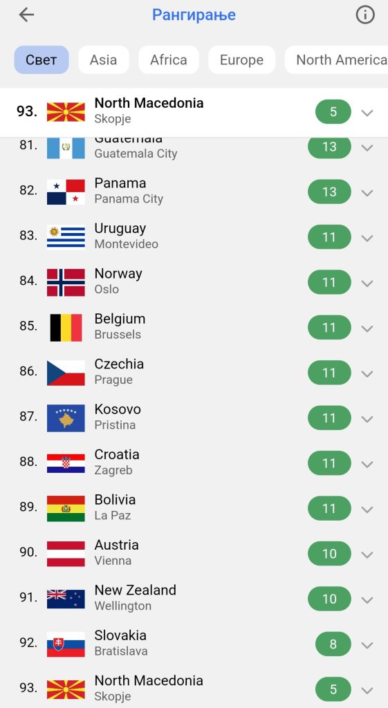 Покрај честото неславно прво место на најзагаден воздух во светот, добро е да се видиме и на крајот на оваа табела.