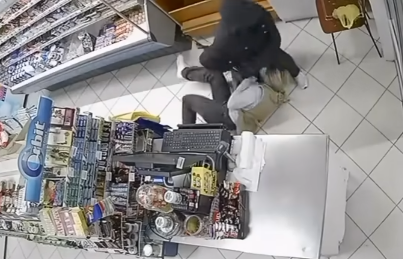 На снимките од надзорните камери се гледа како маж облечен во црна јакна влегува во објектот, а по кратко време од под јакната вади автоматска пушка. Наместо да се повлече, вработената застана пред него, по што дошло до турканица и борба за оружјето.