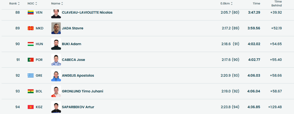 Тој, патеката ја мина за време од 3.59.56 заостанувајќи за над 52 секунди зад првопласираниот.