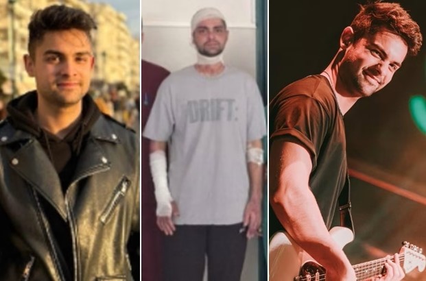 Гитаристот сведочеше дека се здобил со изгореници на дишните патишта, десното уво, десната рака, лицето и грбот. Поради сериозноста на повредите бил лекуван во Солун и сè уште не е во можност да се врати на работа.