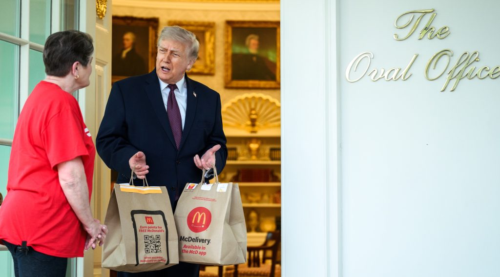 President Trump just received a McDonald’s delivery order from a DoorDash driver outside the Oval Office!