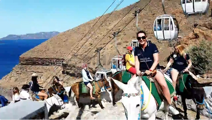 Туристите на грчкиот остров Санторини со години јаваат магариња од старото пристаниште до градот Фира, кој се наоѓа на врвот на карпата. Сепак, поради екстремно стрмната рута со камени скали, големиот метеж и зголемените предупредувања од организациите за заштита на животните, локалните власти воведоа построги правила. Сега секој што сака да јава магаре не смее да тежи повеќе од 100 килограми, објави порталот „Олвејс петс“ (Always Pets).