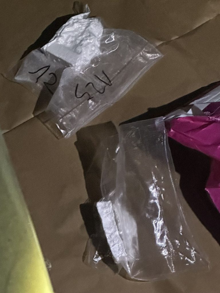 При преглед во паркирано патничко возило „дачиа дастер“ со албански национални ознаки, во кое тој се наоѓал, полициските службеници труга, пронашле отворен патнички куфер и ќеса со марихуана, додека во багажниот простор биле пронајдени пакување со бела прашкаста материја, два пиштоли, 105 куршуми различен калибар, дигитална вага и други предмети.