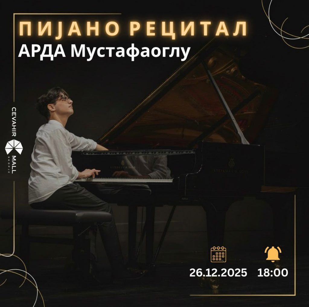 Љубителите на класичната музика на 26 декември ќе имаат можност да уживаат во вечер исполнета со емоции, виртуозност и уметничка инспирација. Младиот и исклучително талентиран пијанист Арда Мустафаоглу ќе одржи пијано концерт во Cevahir Mall Skopje, со почеток во 18:00 часот.