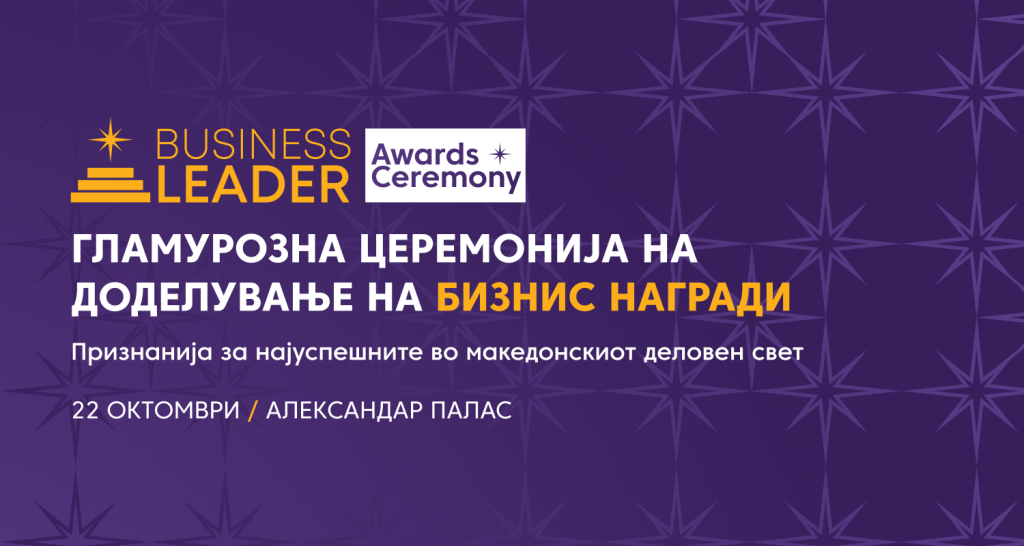 Скопје, 7 октомври 2025 – Македонската бизнис заедница се подготвува за својот најважен и најпрестижен настан. На 22 октомври 2025 година, во хотел „Александар Палас“, ќе се одржи гламурозната церемонија на доделување на престижните награди „Бизнис Лидер“, вечер на прославување на извонредноста и успехот на најуспешните во македонскиот деловен свет.
