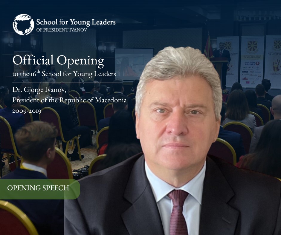 Синоќа започна 16-тата Школа за млади лидери на претседателот Иванов, која ќе се одржува во следните две недели, во периодот од 3 до 16 ноември 2025 година. Програмата се реализира комбинирано, онлајн до 7 ноември и со целодневна програма од 9-16 ноември 2025 година во Хотел Инекс Олгица во Охрид. Со овогодинешната тема „Младинска агенда за одржлив развој”, школата е посветена на Целите за одржлив развој на ОН, како глобална иницијатива која ја поттикнува и младинската улога во создавањето на праведни, инклузивни и одржливи општества.