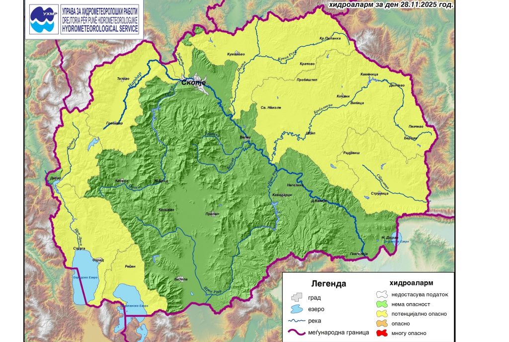 Управата за хидрометеоролошки работи (УХМР) издаде жолто ниво на предупредување поради потенцијална опасност од поплави.