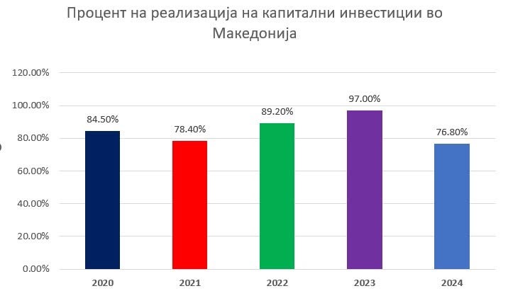 Според неговата анализа на податоците од последните пет години, постои континуиран и значителен јаз меѓу планираните и реализираните капитални инвестиции. Наместо да бидат мотор на економскиот раст, капиталните проекти најчесто се реализираат во далеку помал обем од предвидениот, што, како што наведува Миноски, укажува на системски слабости во планирањето и спроведувањето.